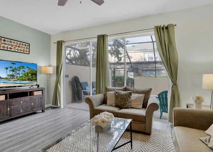 Die Villa in Orlando liegt im Stadtviertel Celebration von Orlando, in etwa 4 km Entfernung vom Blizzard Beach. Diese Villa liegt in ungefähr 10 Autominuten Entfernung von Naturattraktionen wie dem Disney's Animal Kingdom Freizeitpark. Mystic Dunes Golfplatz ist auf jeden Fall einen Besuch wert und liegt rund 500 Meter von hier entfernt.